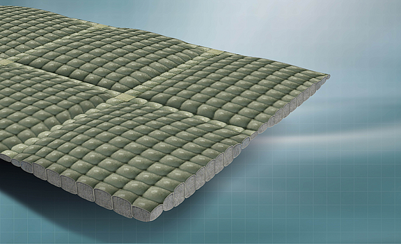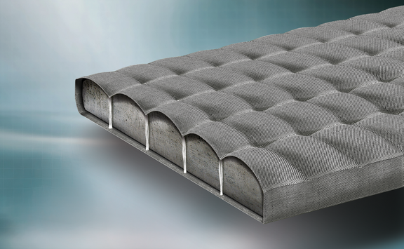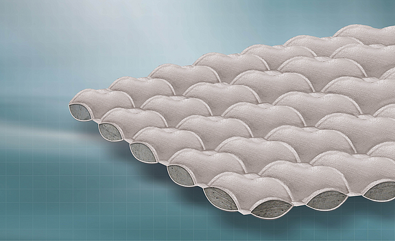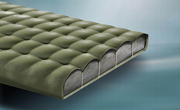 De verticaal geplaatste verbindingsstukken zorgen voor maximale vormstabiliteit en een uniforme, vlakke matrasdikte, zelfs bij oneffen ondergronden of onderwaterinstallaties. Tegelijkertijd is dankzij de lagegere oppervlaktekrimp een geoptimaliseerd materiaalgebruik mogelijk, wat niet alleen grondstoffen bespaart, maar ook de rendabiliteit van het bouwproject aanzienlijk verhoogt.
