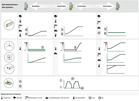 In de comfortfase is de regeling van de ventilatie voornamelijk temperatuurafhankelijk. Het systeem is altijd klaar om snel te reageren op weersveranderingen. Ventilatoren zorgen ook voor een minimale luchtuitwisseling, vooral wanneer er geen wind is.