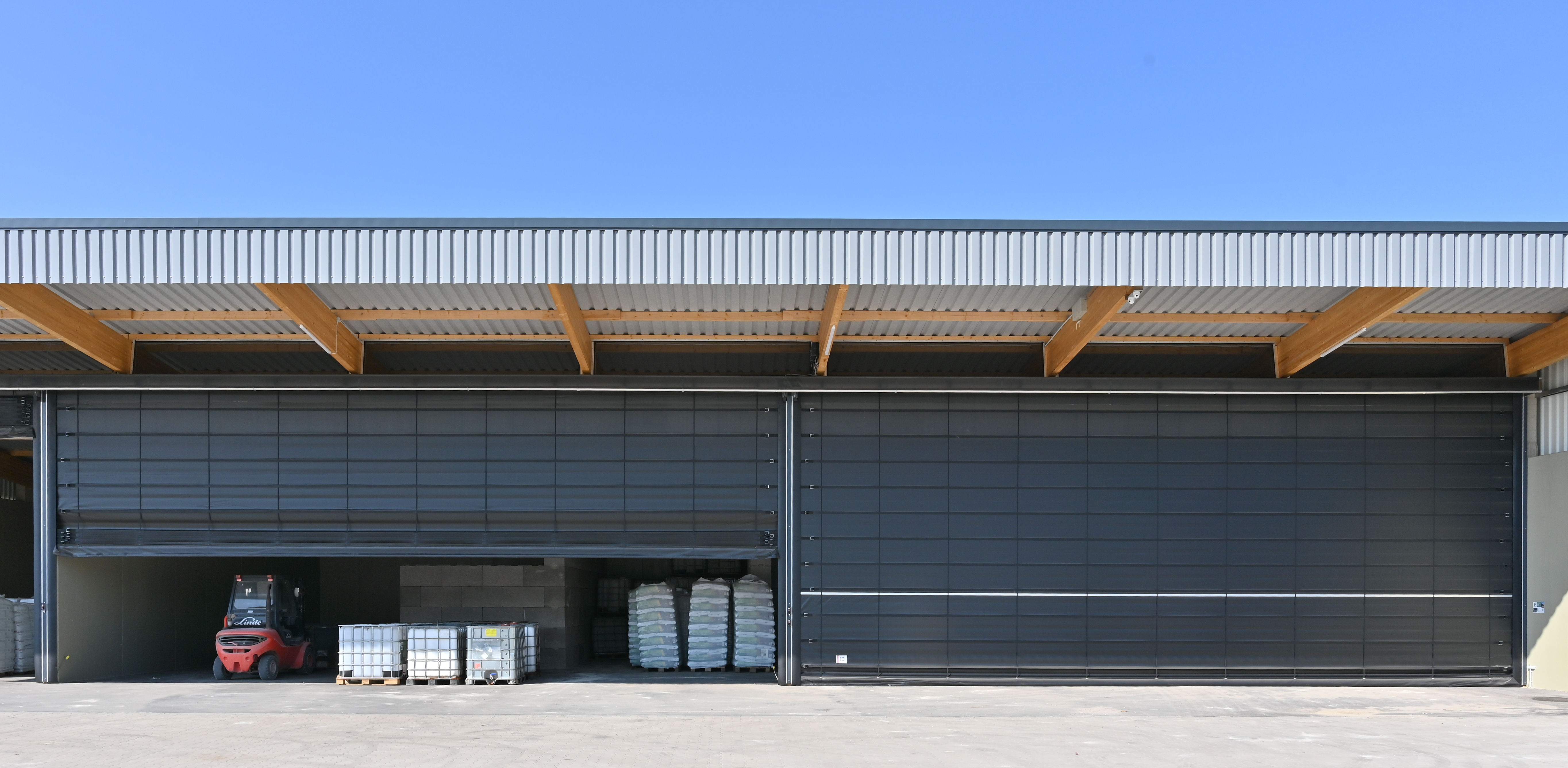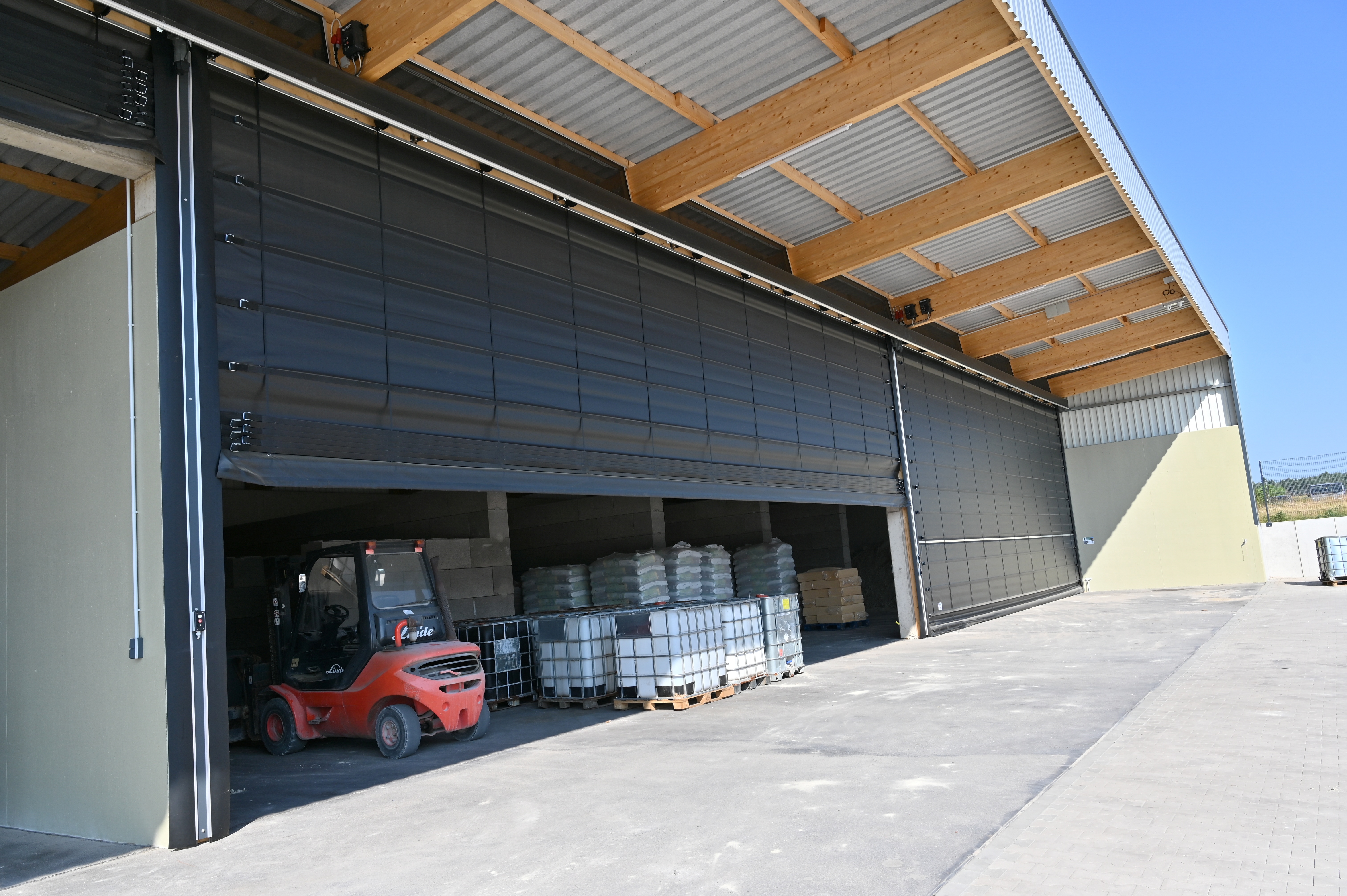 Flexible hall closures in the fertiliser and pallet storage areaCustomer
