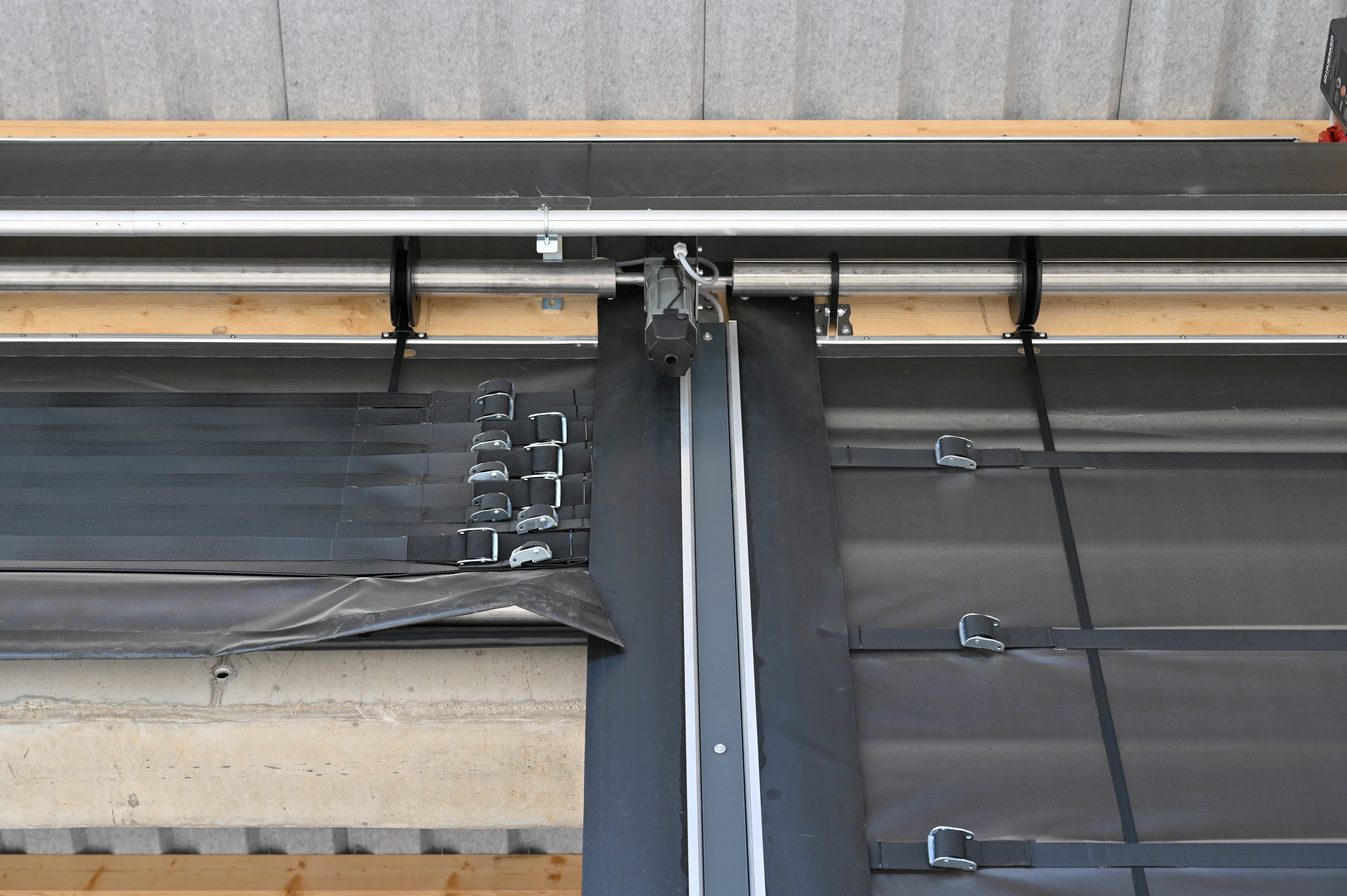 By using the large-format Tectura folding fronts, Raiffeisen Ems-Vechte eG can optimally secure its fertiliser and pallet warehouse and at the same time meet the operational requirements for flexibility and accessibility. The translucent, black PES tarpaulin provides effective weather protection while allowing natural light into the warehouse areas. Thanks to their corrosion-resistant properties, the textile door solutions are ideally suited to the demanding environment of fertiliser storage facilities. Even under high wind loads, the doors remain stable and functional, which ensures additional operational safety. In addition, the large door width offers ideal conditions for the entry and exit of lorries, forklifts and the use of larger conveyor belts. Overall, the solution represents an economical, durable and technically convincing investment that fulfils the high logistical requirements of daily operations.