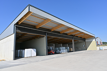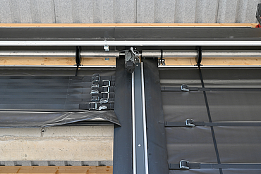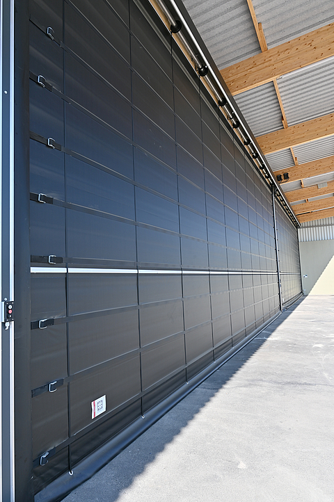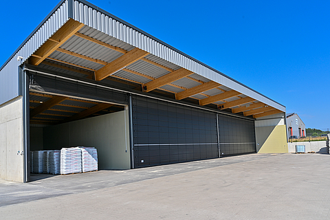 Raiffeisen Ems-Vechte eG, based in Lorup, is a co-operative in the agricultural supply sector. It produces and sells feed and fertiliser for regional agriculture. In the area of fertiliser and pallet storage, the requirement was to reliably protect the existing hall openings from the effects of the weather. The solution not only had to meet the high logistical requirements - daily access by lorries as well as forklift and conveyor belt traffic - but also protect the sensitive components against the corrosive effect of the stored fertilisers.