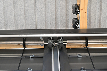 After comprehensive consultation with HUESKER Synthetic GmbH, Raiffeisen Ems-Vechte eG decided in favour of Tectura folding fronts. A total of two folding fronts measuring 14 m × 6 m and one folding front measuring 7 m × 6 m were installed in the fertiliser and pallet storage area. A black translucent PES tarpaulin was used.