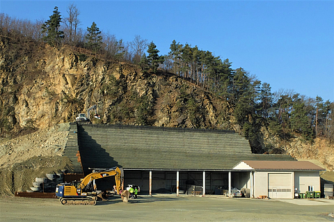 The operator of the Badersdorf quarry in Burgenland, Austria, was seeking a suitable solution to protect both employees and buildings located in the immediate vicinity of a rock slope from falling rock fragments. As there was no longer any active quarrying in the affected section of the rock face at the time of planning, the protective structure only needed to be designed for weather-related rockfall. Owing to the short distance between the rock slope requiring protection and the operational buildings, a particularly space-saving solution had to be found.