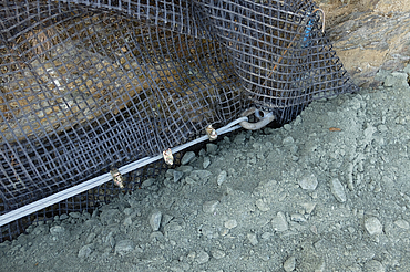 Before construction began, the rock face was prepared by removing loose stones and debris, and a level area was created at the base of the GRS structure in order to ensure a stable bearing surface. To prevent subsequent heaving of the earth structure, geogrids were back-anchored at regular intervals into the natural rock formation by means of steel cables installed in the rock.